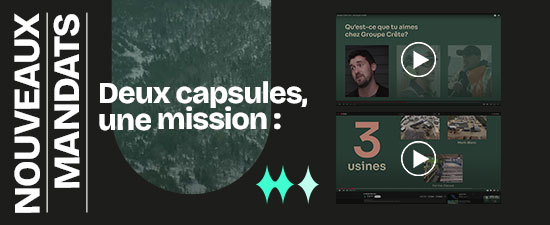 Deux capsules vidéo ont récemment été réalisées pour Groupe Crête, chacune répondant à un objectif de communication précis. La première capsule, de nature corporative, présente les trois usines du groupe, sa mission ainsi que les grandes lignes de l’entreprise. Diffusée sur le site web et sur YouTube, cette vidéo vise à renforcer la notoriété du […]